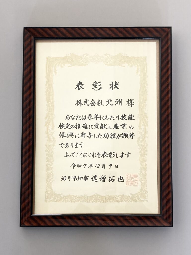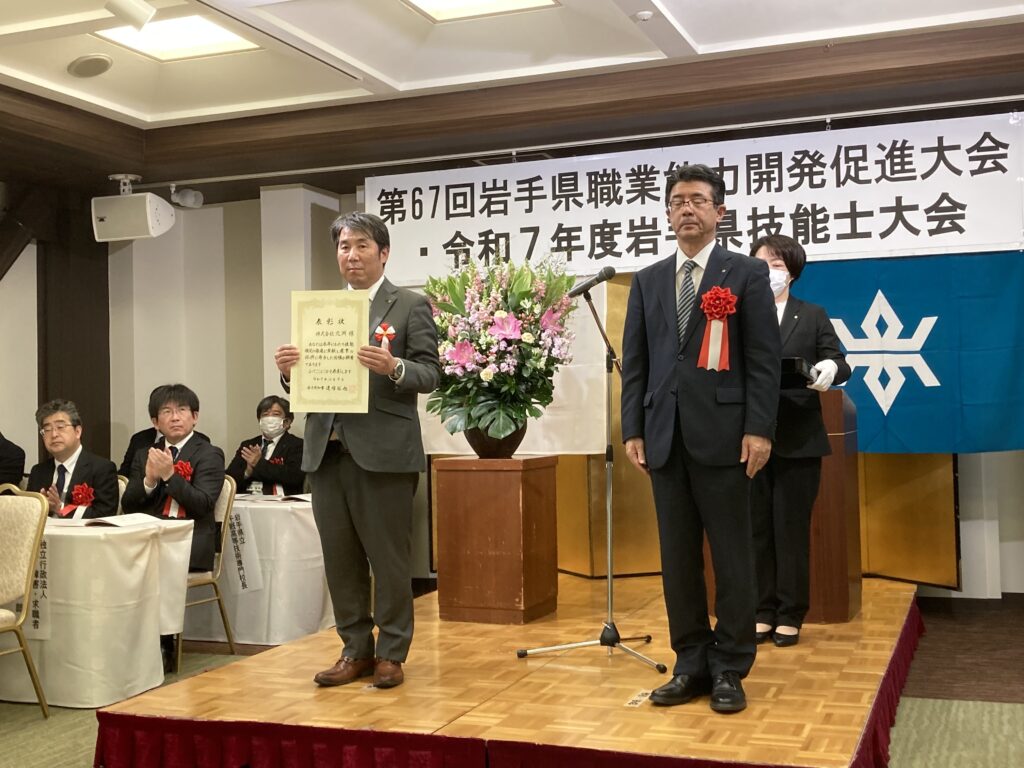このたび当社は、令和7年度「岩手県認定職業訓練等表彰(岩手県知事表彰)」において、技能検定功労賞を受賞いたしましたので、お知らせいたします。