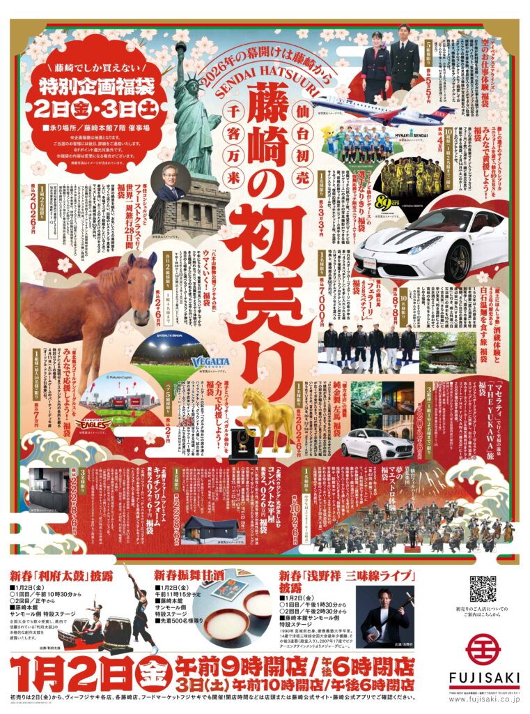 2026年1月2日(金)より開催される藤崎百貨店様の「2026年 藤崎の初売り」において、弊社は新春特別企画福袋を出品いたします 。