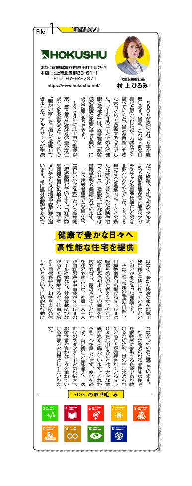 2020年9月21日付の岩手日報SDGs特集に社長 村上ひろみのインタビューが掲載されました。