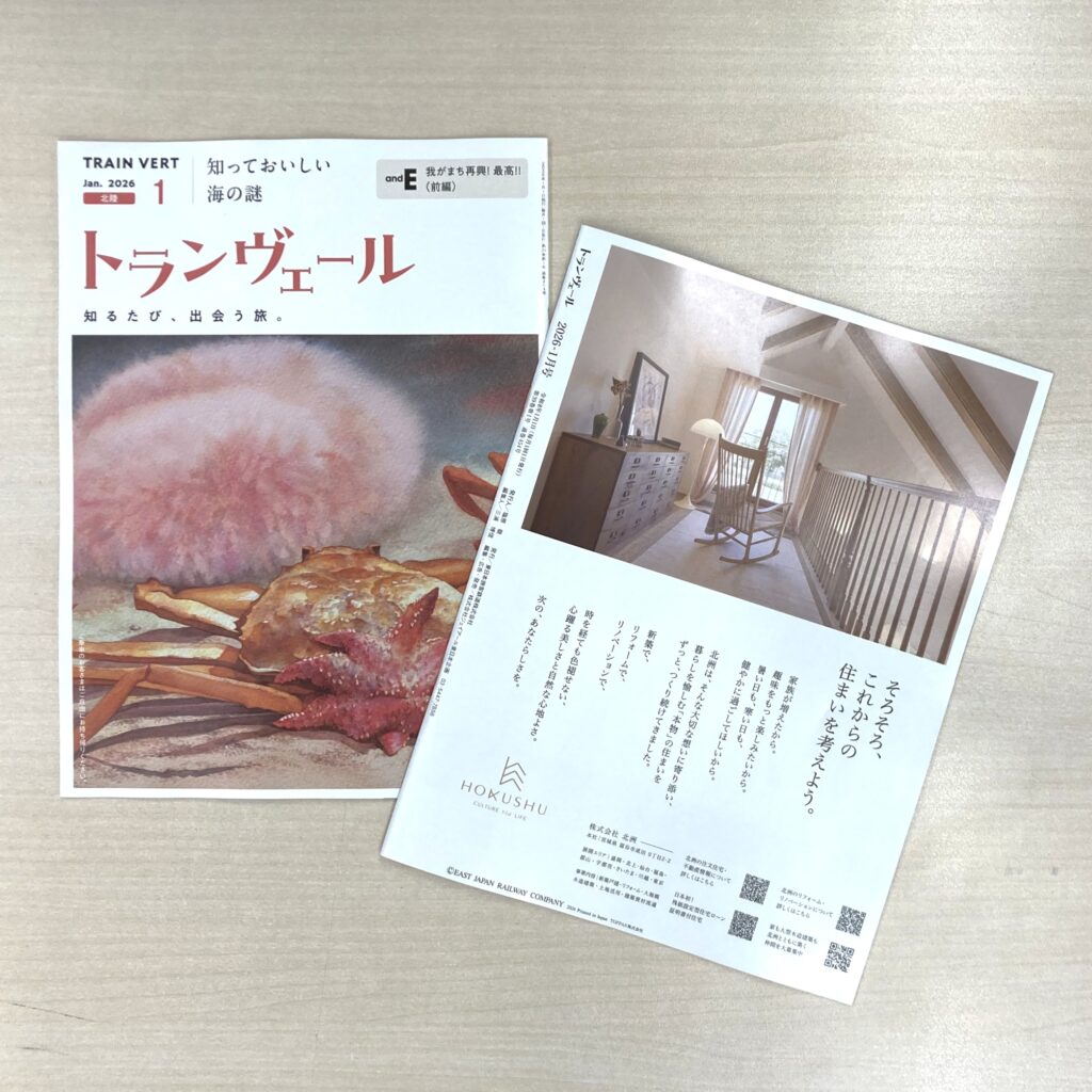 2026年1月1日より、JR東日本新幹線の全座席ポケットに備え付けられる車内誌「トランヴェール」1月号に、弊社の広告を掲載いたします。