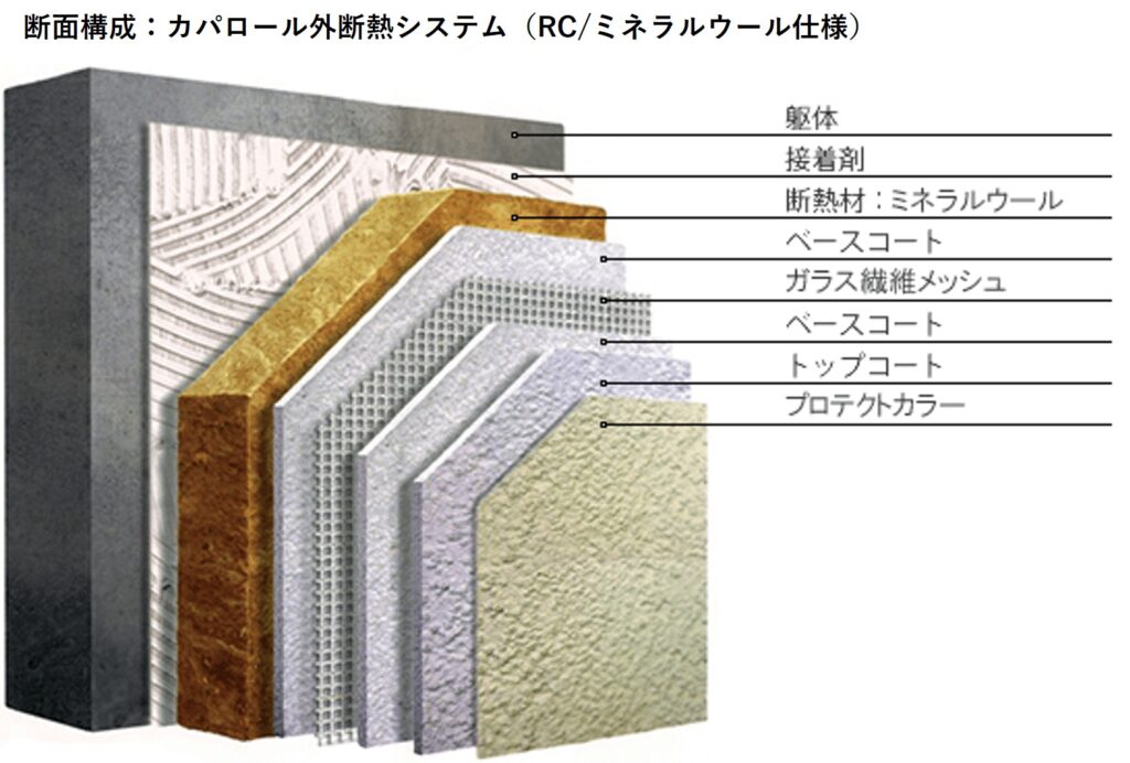 もちろん防火認定も取得。高い省エネルギー効果で冷暖房費を低減することができるのです。RC造・木造、新築・リフォーム[断熱改修]、幅広く採用できるカパロール外断熱システムを是非利用ください。
