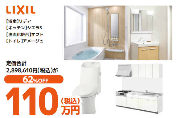 浴室:リデア/キッチン:シエラS/洗面化粧台:オフト/トイレ:アメージュ