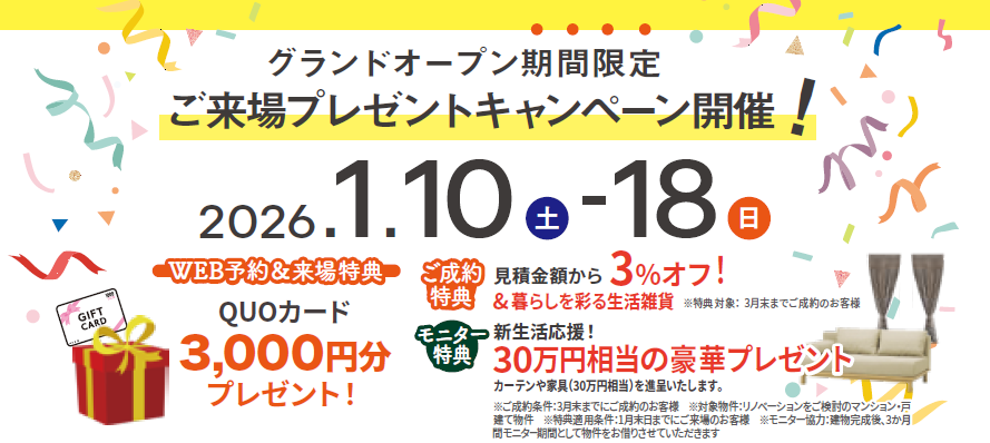 ◆WEB予約&来場特典 QUOカード3,000円分 プレゼント!