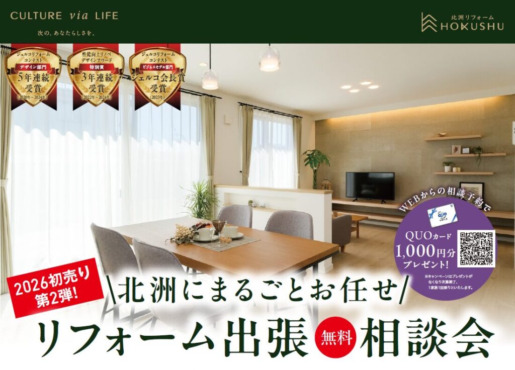 1/31㊏~2/15㊐までの間、『北洲にまるごとお任せ!リフォーム出張無料相談会』を開催いたします。リフォームを検討している方はこの機会にぜひご相談ください。