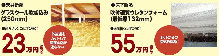 ■天井断熱 グラスウール吹き込み(25㎝) ※標準工事費込