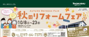 北洲リフォーム北上支店では、10/23(日)まで『秋のリフォームフェア』を開催いたします。お住まいの現地調査やお見積もりの提出は無料で行っております。ご希望のリフォーム内容をお伝えください!