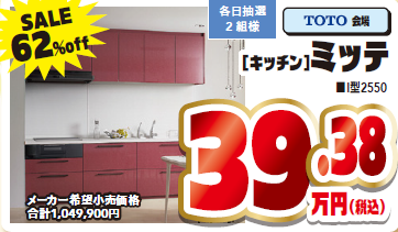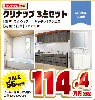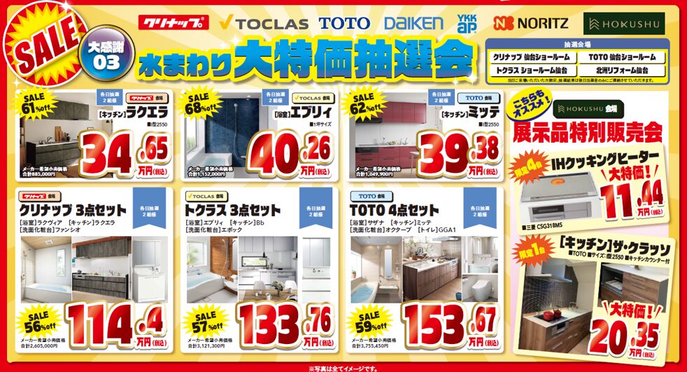 >>水まわり大特価抽選会【クリナップ/トクラス/TOTO/北洲会場】