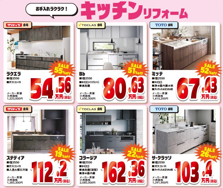 >>キッチンリフォーム【クリナップ/トクラス/TOTO会場】