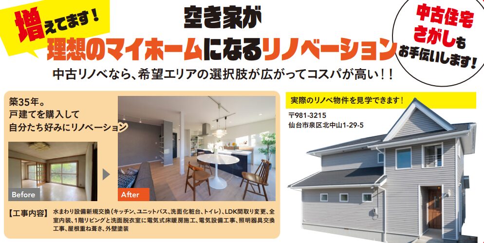 中古リノベなら、希望エリアの選択肢が広がってコスパが高い!中古住宅さがしもお手伝いします!