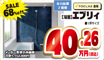 等をお考えの方は実際に商品をご覧いただきながらリフォームのご相談ができる絶好の機会です。2日間限りの大特価商品やハズレなしの大抽選会もお見逃しなく!