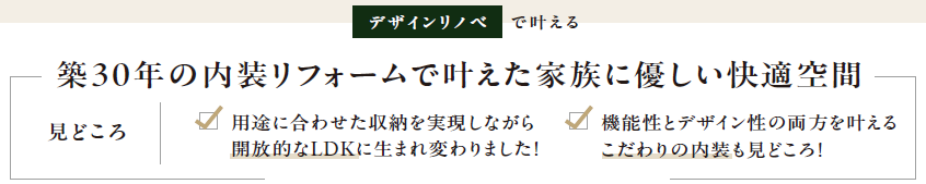 築30年の内装リフォームで叶えた家族に優しい快適空間をご覧いただけます。
