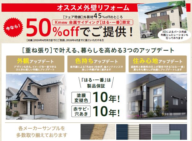 オススメ外壁リフォーム今なら50%OFFでご提供!