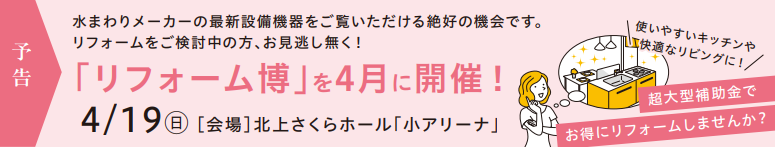 【予告】4/19㊐北上さくらホール「小アリーナ」にてリフォーム博を開催!