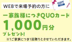 【WEB予約特典】一家族につきQUOカード 1,000円分 プレゼント!