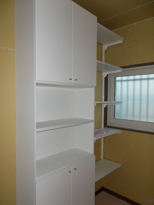 今回の工事で、奥がパントリーになり収容量もグッとアップする予定です。 -