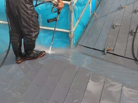 屋根から外壁へと、洗浄作業が進んでいきます。