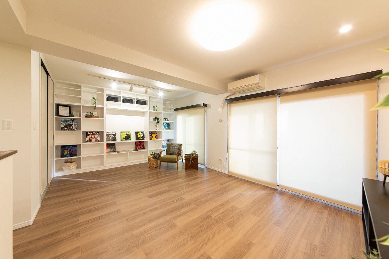 2つあります。1つは、リビングに併設された和室をリビングと一つながりに改装し、そこに、壁一面にレコード棚を設置しました。私はレコード収集が趣味なのですが、家の様々なところにバラバラに納めていたものを一か所に集めてライブラリー化できました。夢の一つだったので大変満足しています。