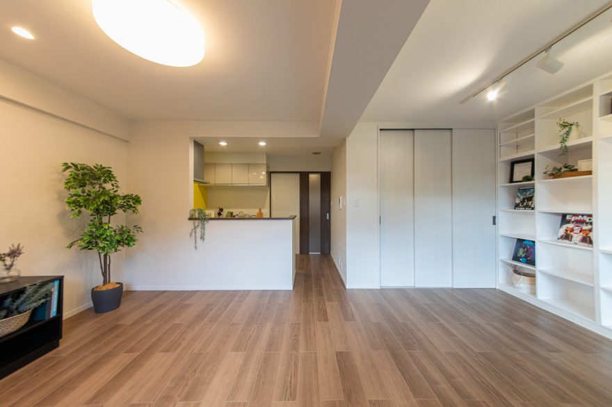 新しいLDKは、元の和室スペースも含めてひとつながりの空間となりました。