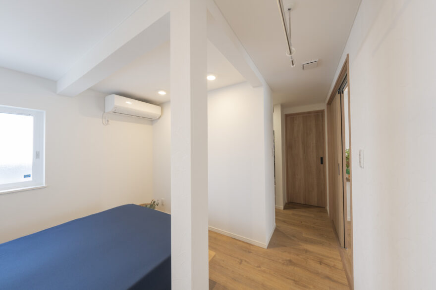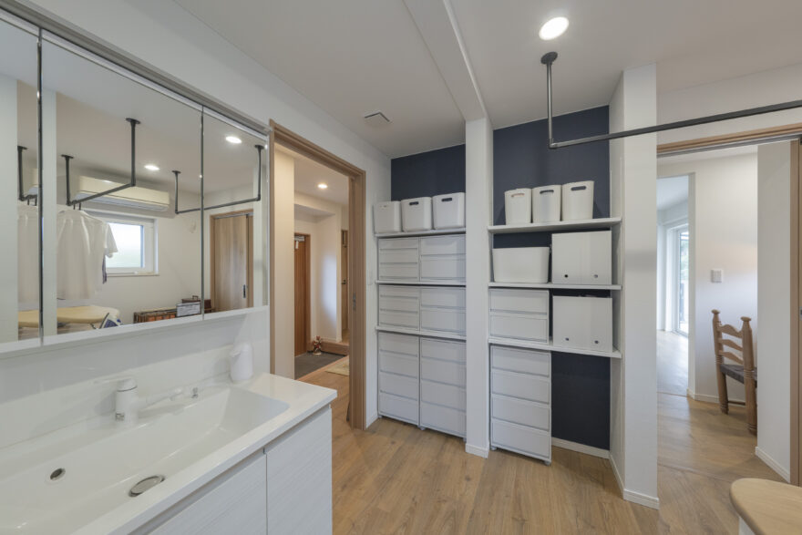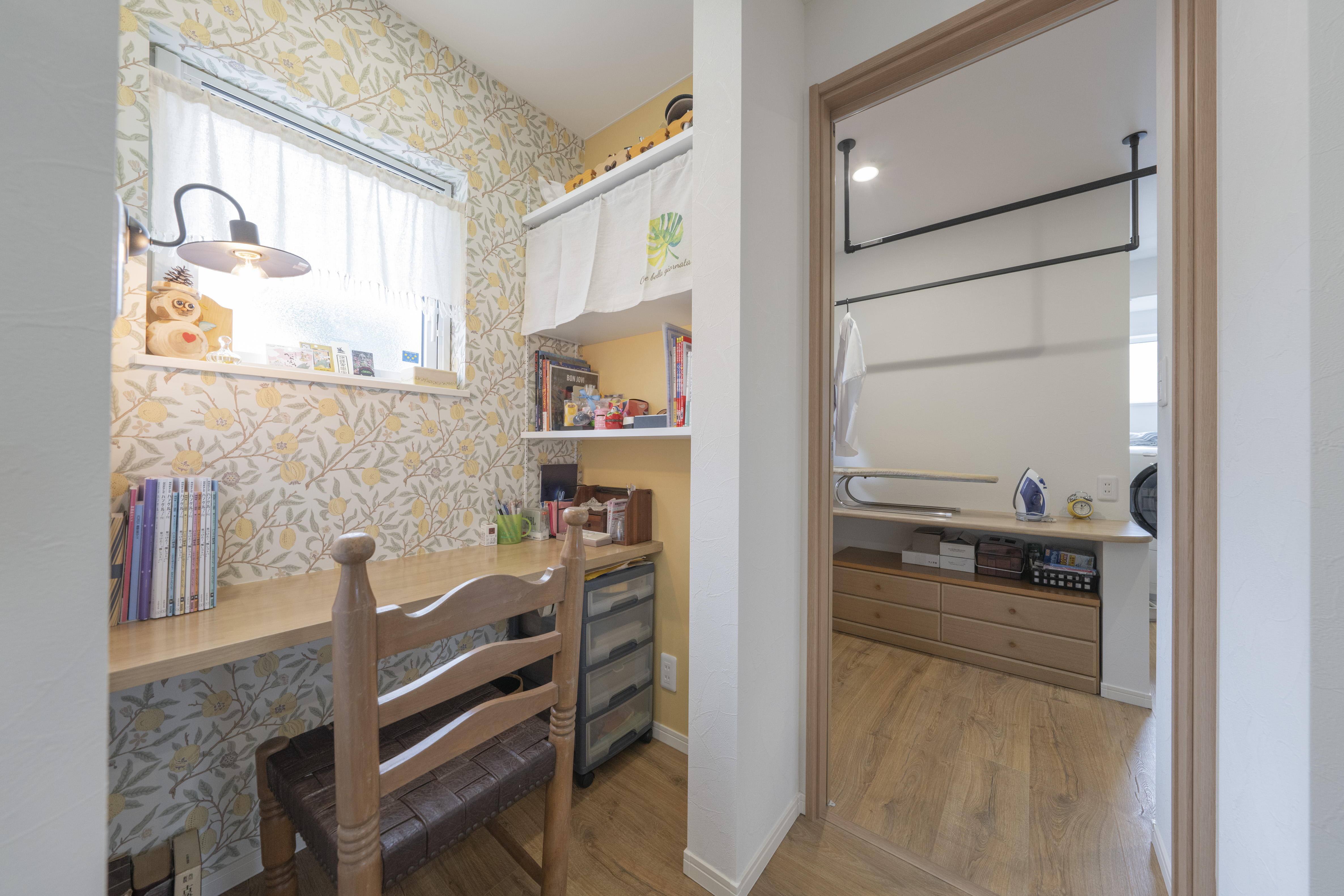 また、昨今の感染症の流行から、帰宅時のうがい手洗いへの動線、感染者が出た場合の隔離部屋(小さいですが)を考えました。