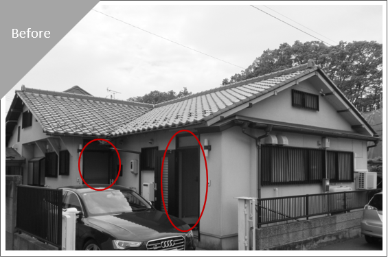 【2つあった玄関を1つへ、さらに玄関位置も変更しました。】