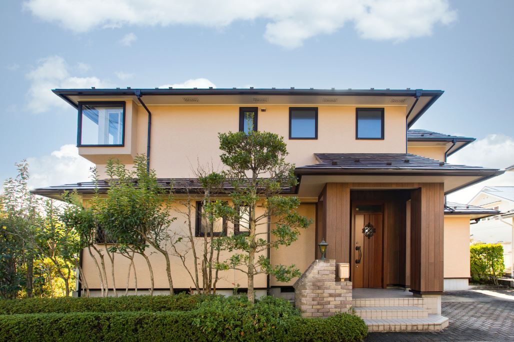 ご提案前に専用の機器を使用して、現状の屋根・外壁、その他細かな部分の住宅診断を行い、劣化状況を把握します。その上で、これからも永く安心して暮らせるよう、必要な塗装を行いました。玄関まわりの一部にアクセントで別のカラーを取り入れています。雰囲気も変わって新鮮ですね。