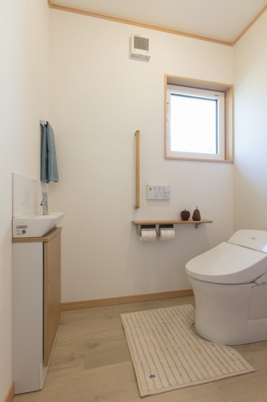 床材の三層フロアや腰壁のパネリングなど、バランスの取れた木質化は、健康面や心理面でも人に心地よさを与えてくれます。目地の無いフロア材なので、ほこり等の目詰まりがなく衛生性を保ちます。さらに調湿効果のある塗り壁は、塗り方による風合いや凹凸が作り出す陰影が落ち着いた空間をつくります。